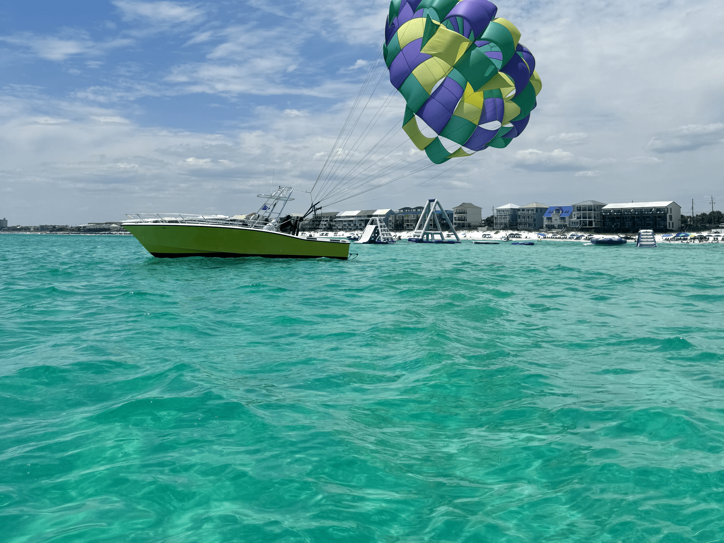 Experience the views and thrills of parasailing with Florida’s premier parasail operator. Come join us for an exciting parasail adventure with breathtaking views of the Emerald Coast! Our highly trained, friendly and professional staff are here to ensure your parasailing experience will be unforgettable! The best thing to do in Destin and Miramar Beach while on vacation! Your adventure will start right from the beach in the beautiful Gulf of Mexico. Afterwards you can enjoy the white sandy beach and relax in the sun. We are the closest Parasail Adventure to 30A, Santa Rosa, Tops’l, Grayton Beach, Seaside, Watercolor, and Alys Beach.